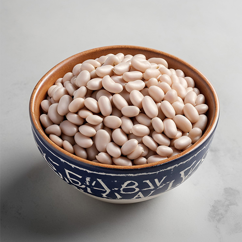 Navy beans are small, white beans with a mild flavor, popular in soups, baked beans, and stews.